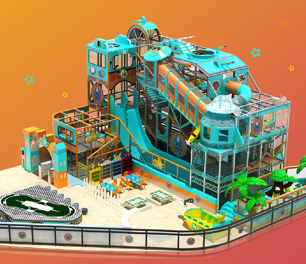 4-8岁儿童核心游乐区:这是乐园的活力心脏。孩子在此阶段精力旺盛、渴望挑战与社交。设备以中型攀爬架、主题滑梯组合、球池、互动投影及初阶拓展项目为主。设计需强调趣味性、适度的挑战性和丰富的互动可能,激发孩子的想象力与协作能力。
