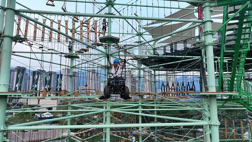在某大型文旅项目中,一座高达25米的水晶塔成为园区的视觉中心。塔内集成了90余项拓展设施,形成超千米空中挑战路线。开业后,水晶塔区域日均接待游客超3000人次,成为园区最受欢迎的项目之一。