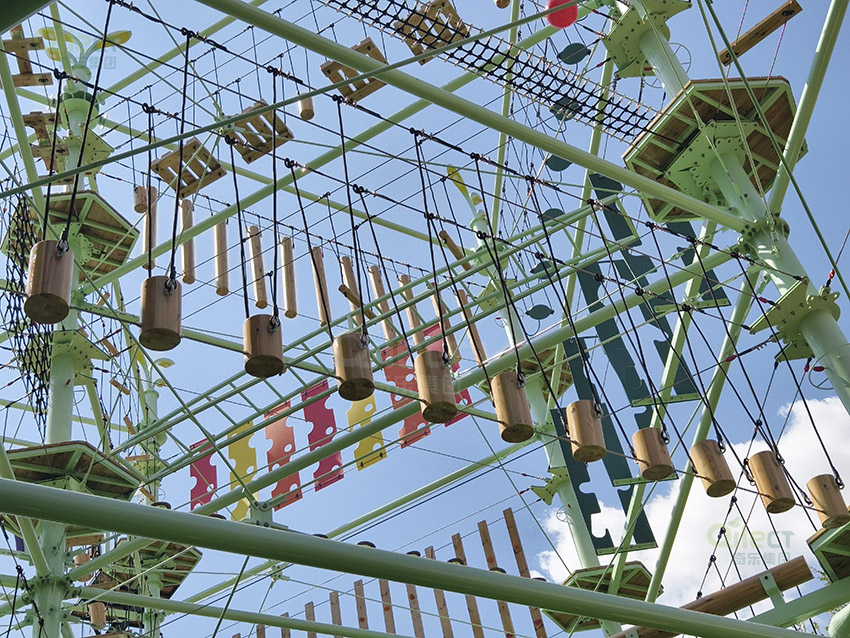 攀爬系统:内部集成垂直爬网、螺旋爬网、绳梯、轮胎攀爬、挑战性障碍等多种攀爬方式