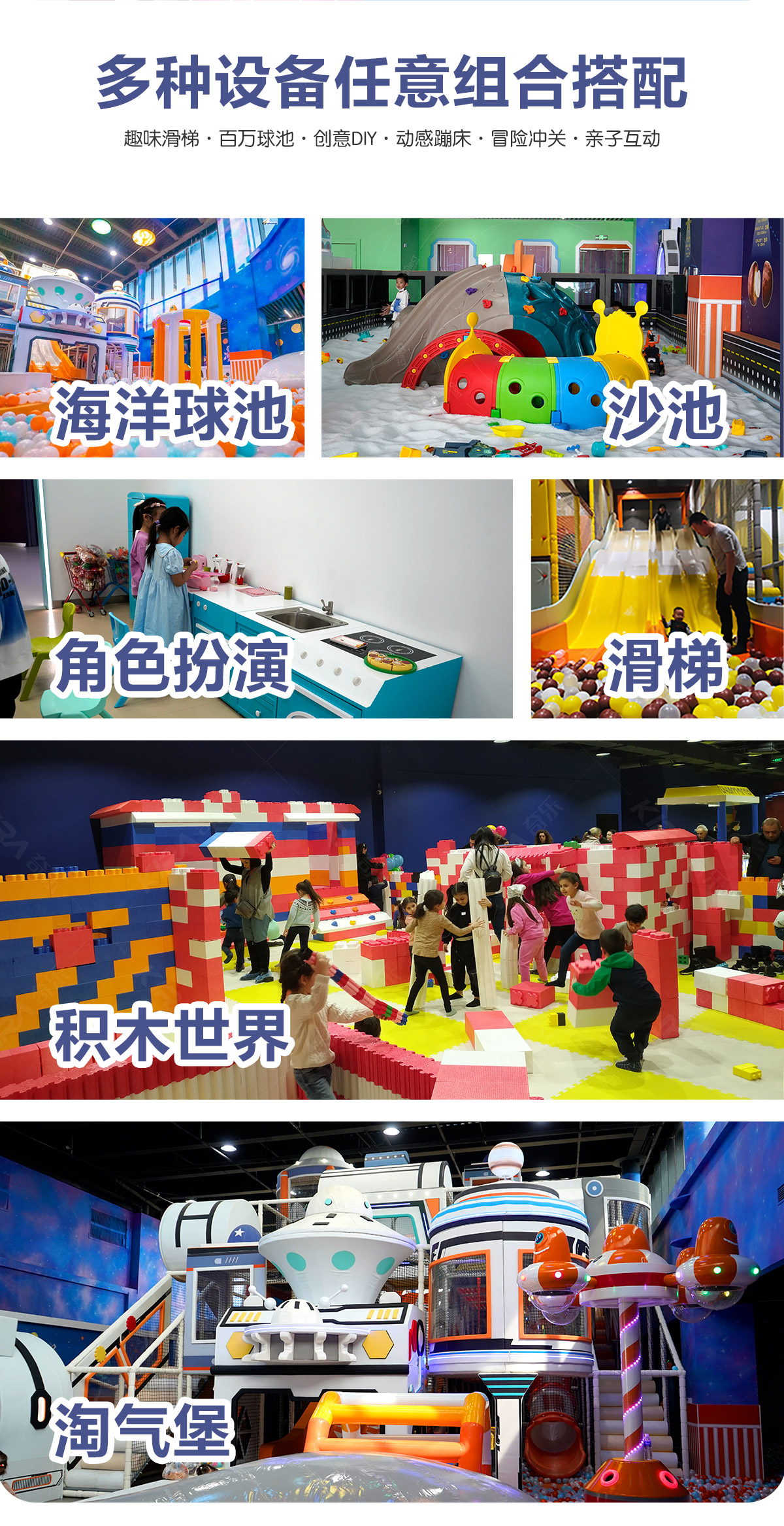 奇乐儿童乐园是包含淘气堡、亲子娱乐中心、弹跳迷宫、攀爬拓展、海洋球池等项目在内的一体化游乐设施。它有别于传统的单一游乐设施,相比而言奇乐儿童乐园在项目上更加的丰富,在结构布局上更加的合理,在安全性稳定性上更有保障,在收益渠道上更加广阔,是目前儿童乐园项目的主流。