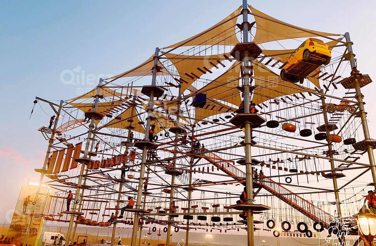 在惠州巽寮湾,广州奇乐游乐设备有限公司建设了占地600㎡的滨海地标设施。该项目成功融合餐饮休闲区与高空挑战项目,年客流量超过50万人次,成为区域文旅融合的标杆案例。