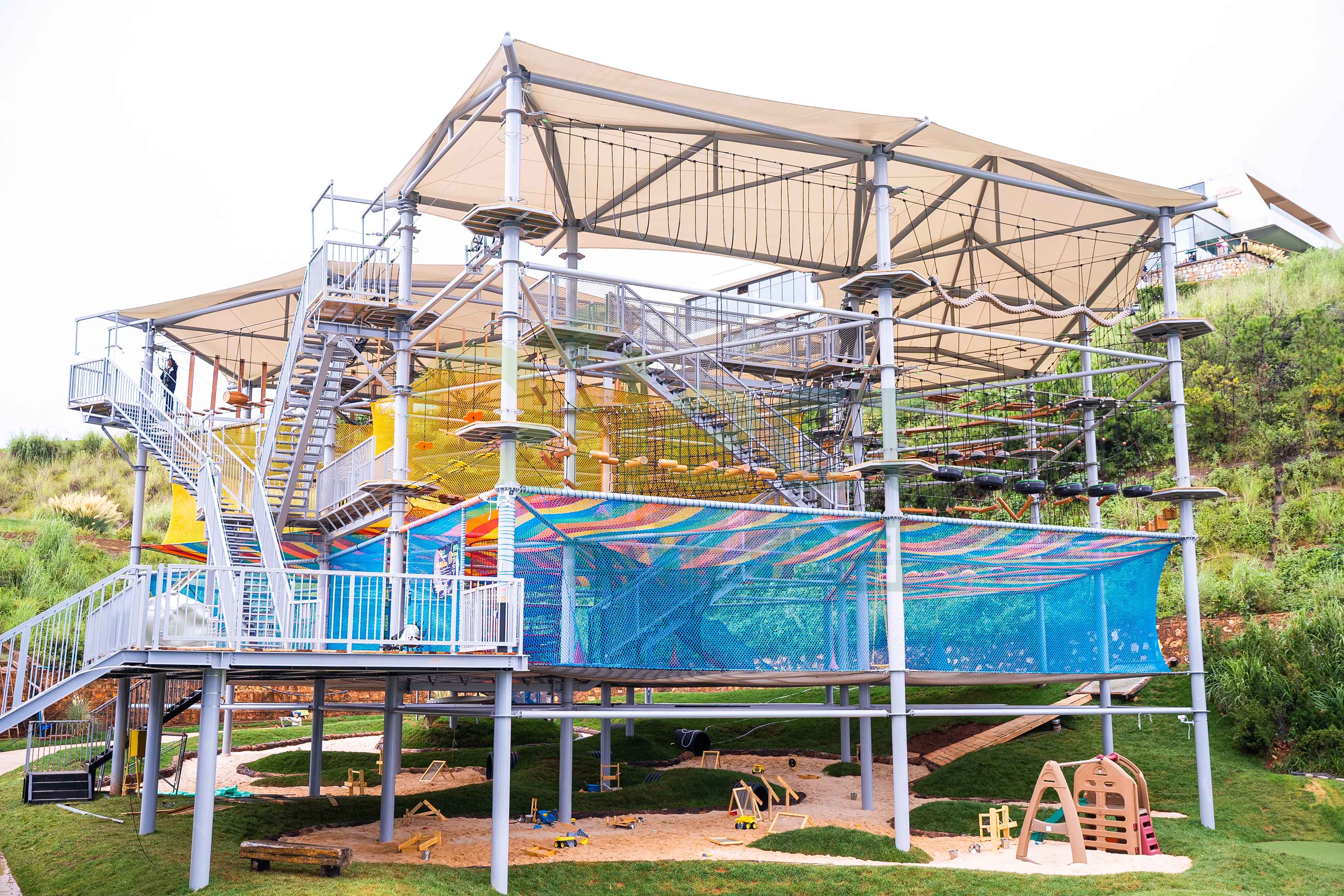 无动力设备:以中等规模(1000㎡)的户外无动力乐园为例,设备采购及安装费用约在80-150万元之间。由于结构相对简单,无需复杂的电气系统,成本主要集中在钢材、木材、绳网等基础材料和主题包装上。