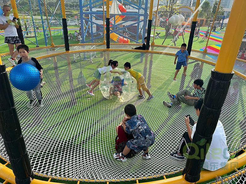 大型爬网矩阵以其独特的立体结构和丰富的游玩层次,成为亲子家庭的最爱。它采用高强度绳网编织而成,形成多层、多路径的攀爬空间,孩子们在其中穿梭探索,乐此不疲。