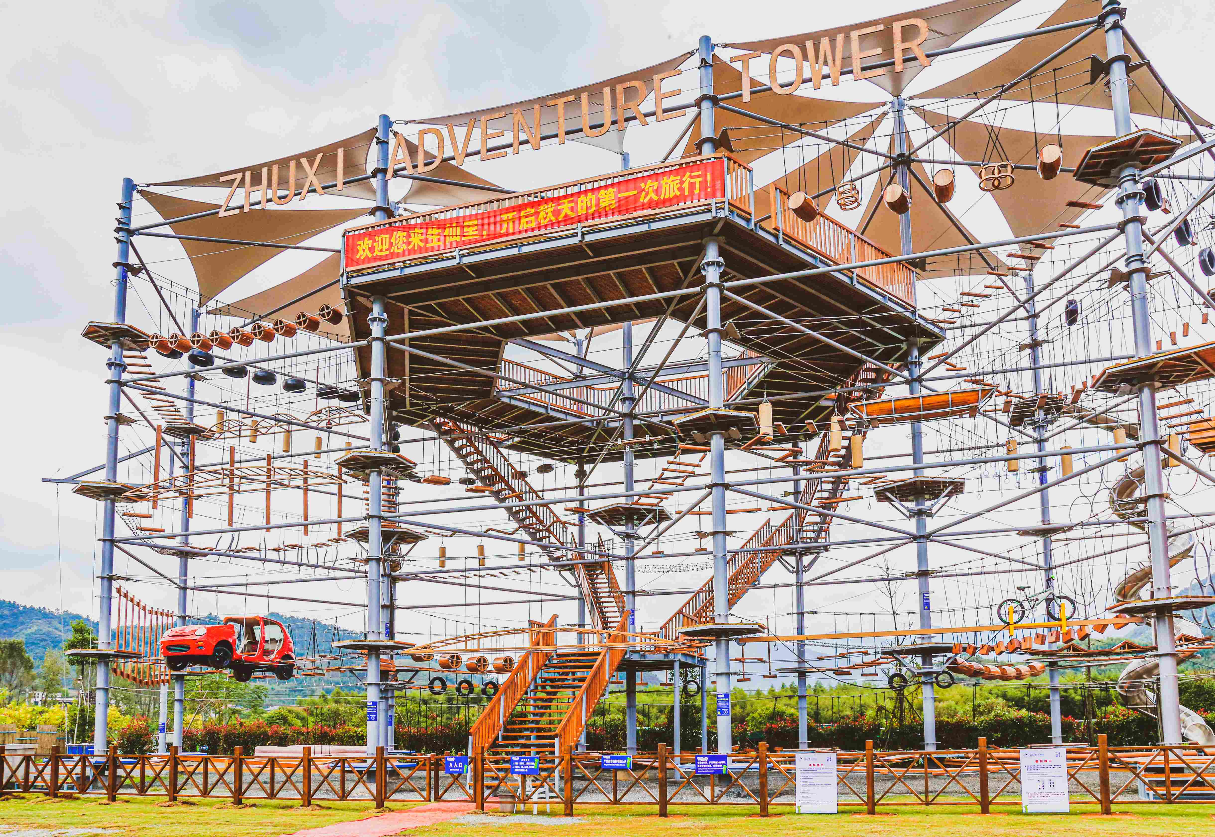 数据印证:这座总高度29.8米、占地1100平方米的立体探险设施,项目运营首季度即吸引超10万人次体验,周末高峰时段需预约等候2小时。其成功经验已复制到惠州罗浮山丛林穿越探险乐园等全国20余个文旅综合体,形成“奇乐模式”的行业标杆。
