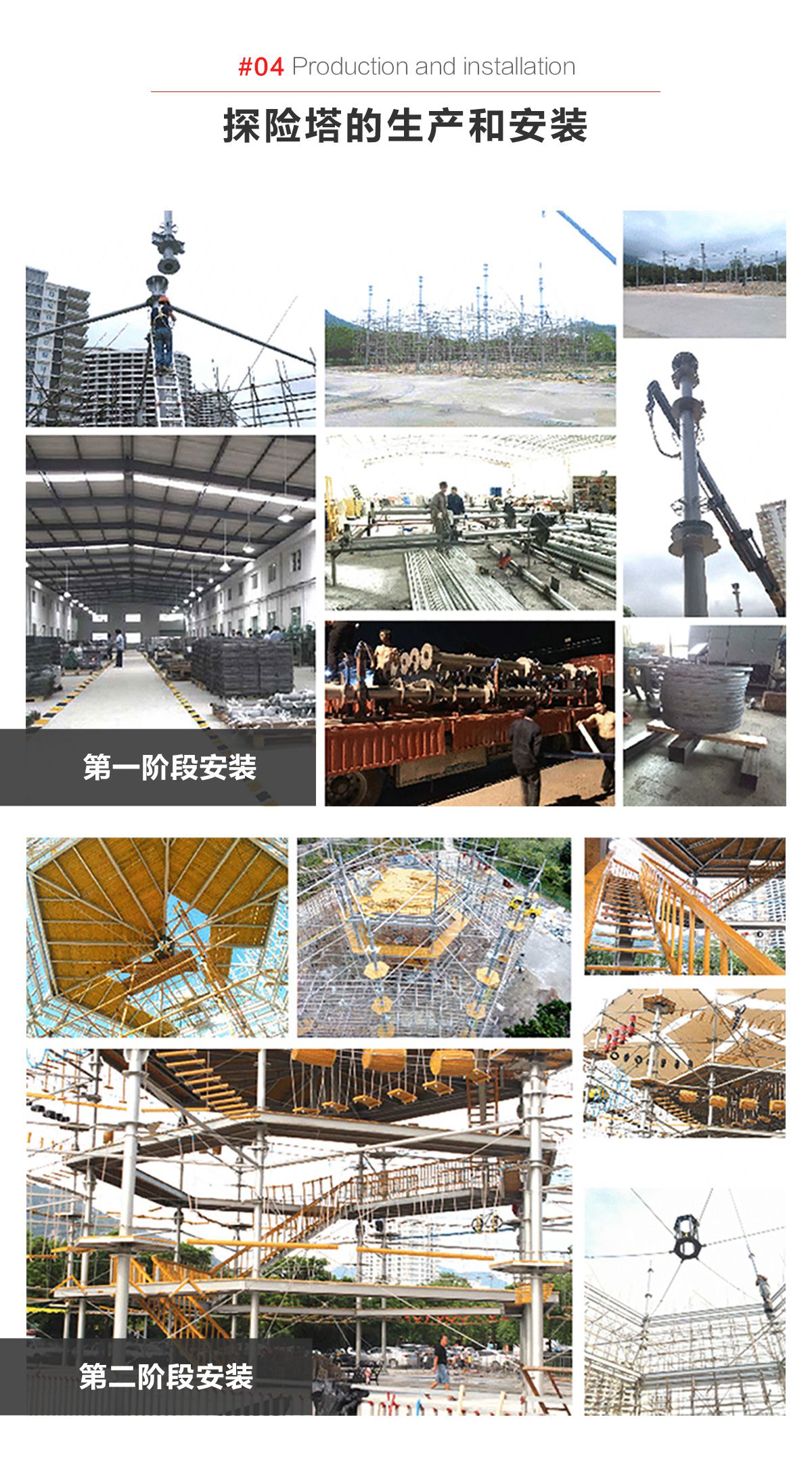 汇集 200 种游乐步道,适合广大游客 水晶塔集冒险、运动、娱乐、挑战于一体的综合游乐类项目,通过在塔内设置并搭建各种难易不同、风格迴异、超强刺激的步道关卡,让游客体验高空坠落与自由滑翔的快感,感受塔内项目攀爬穿越的刺激。水晶塔是一个创新且极具盈利能力的全新休闲旅游项目,适合建在户外,也可以建在窒内。 晶体结构,更稳固,更安全 水晶塔采用品体结构设计,每4根立柱为1个晶体结构,可根据客户需求自由组合,晶体结构设计更大的增加设备的稳定性、利用率,保证客户场地的实用率最大化,立柱之间做连杆支撑,根据结构设置观景台,可达 80~1000+m?,可作为餐饮,休闲吧,咖啡吧,酒吧等休闲休息区域,平台下方悬空架连接杆支撑,平台可同时承载 30-1000+人。 搭配我司自主研发生命系统,保障安全无死角自主研发自锁式双挂钩,相互交替型安全保障永远保证有一个挂钩自锁在钢丝绳上面,保障安全无死角。